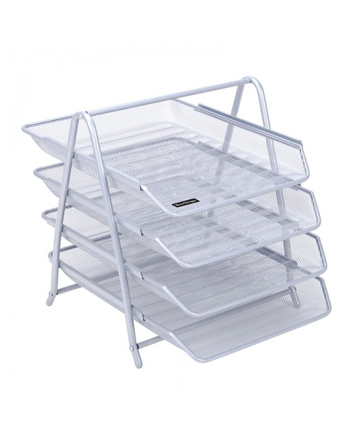 Лоток для бумаг горизонтальный Berlingo "Steel&Style", 4 секции, металл, серебристый