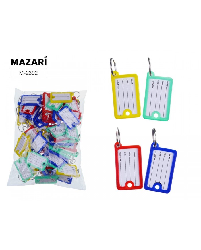 Бирка для ключей с металлическим кольцом и бумажной вставкой 4,8х2,7 см, микс цветов, ОПП-упаковка