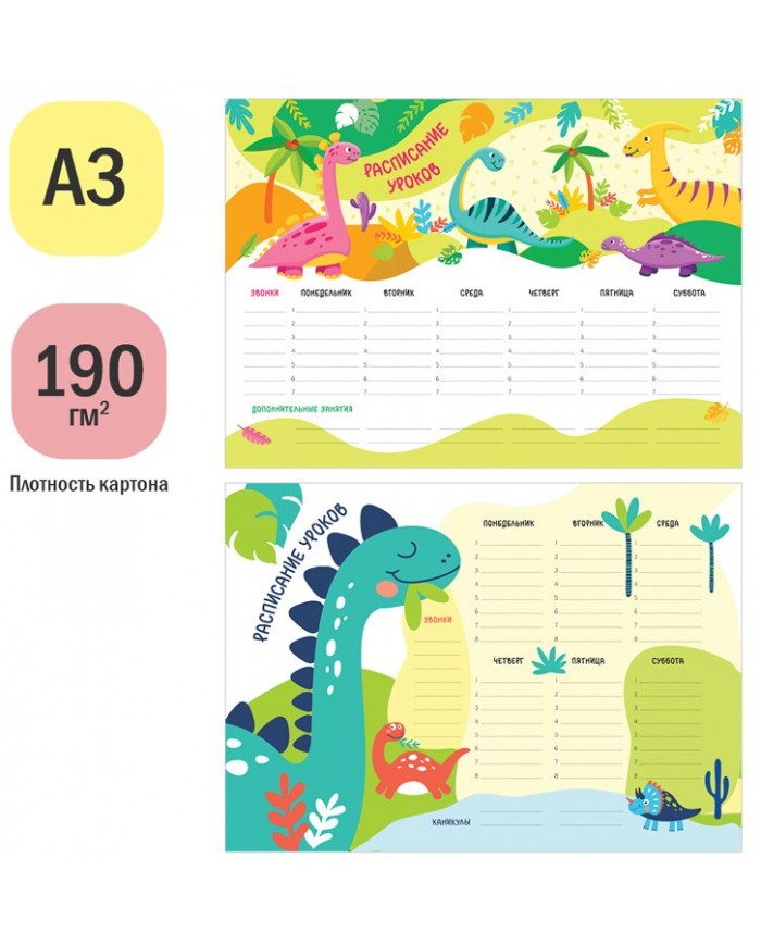 Расписание уроков с расписанием звонков А3 ArtSpace "Dinosaurs"