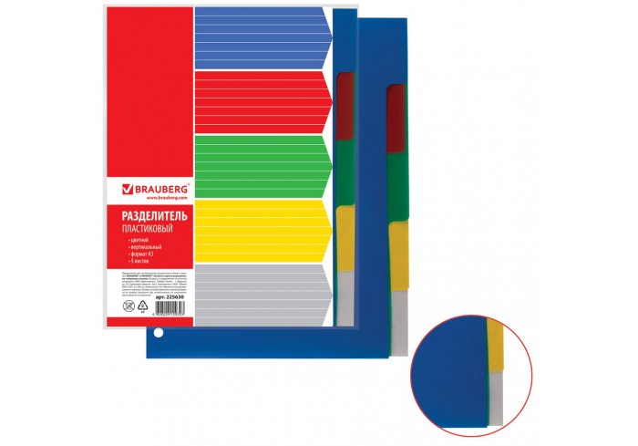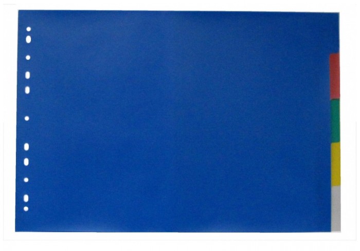 Изготовлены из пластика толщиной 0,12 мм. В комплекте 5 цветов: синий, зеленый, желтый, оранжевый, красный, а также бумажный титульный лист для оглавл..