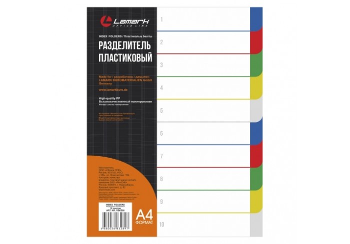 Индексные разделители Lamark формата А4 из плотного цветного пластика 0,14 мм с универсальной боковой перфорацией предназначены для классификации и си..