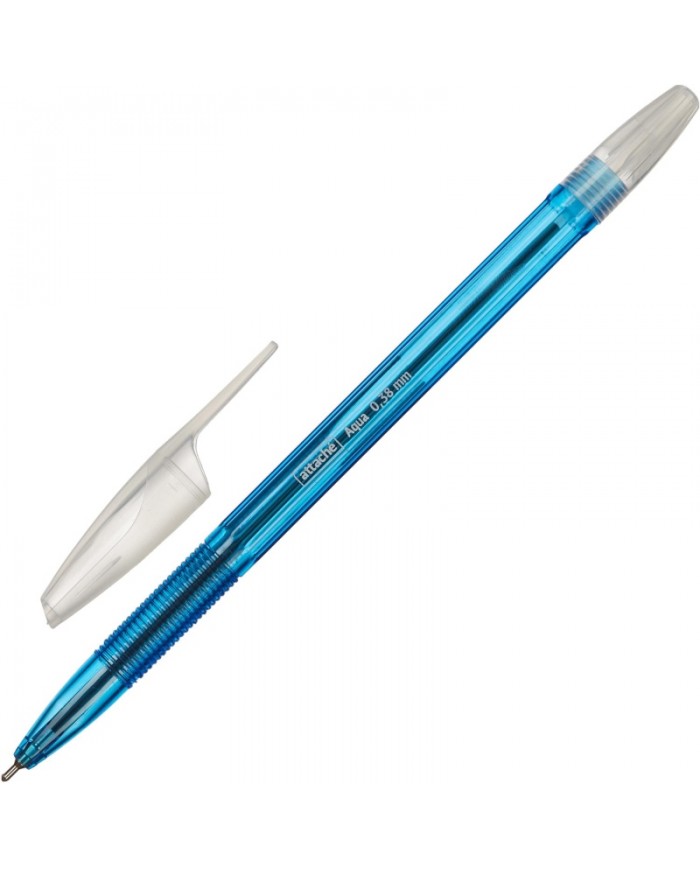 Ручка шариковая масляная, игольчатая Attache Aqua, син стерж, 0,38/0,5мм, 142мм
