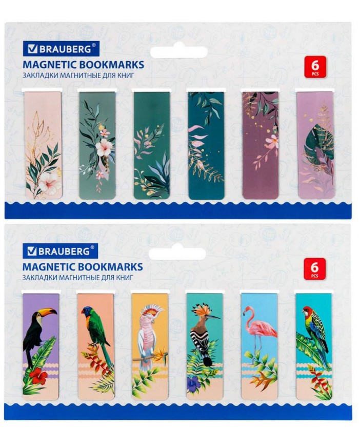 Закладки для книг МАГНИТНЫЕ, "TROPICS", набор 12 шт., 60x20 мм, BRAUBERG,