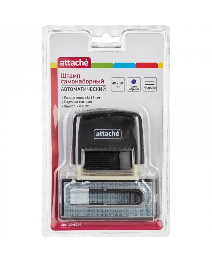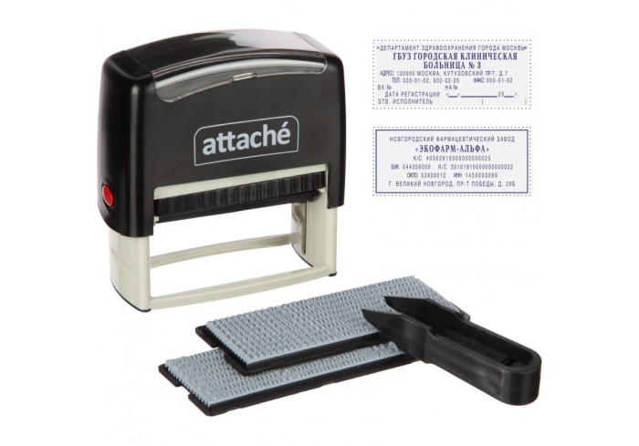 Штамп самонаборный Attache предназначен для самостоятельного создания и изменения текста оттиска. Компактный и надежный пластиковый корпус с автоматич..