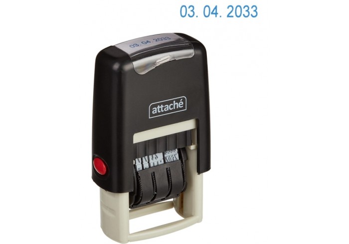 Клише штампа оставляет оттиск размером 22х4 мм синего цвета. Изменение даты осуществляется вращением колесиков. Корпус изготовлен из качественного изн..