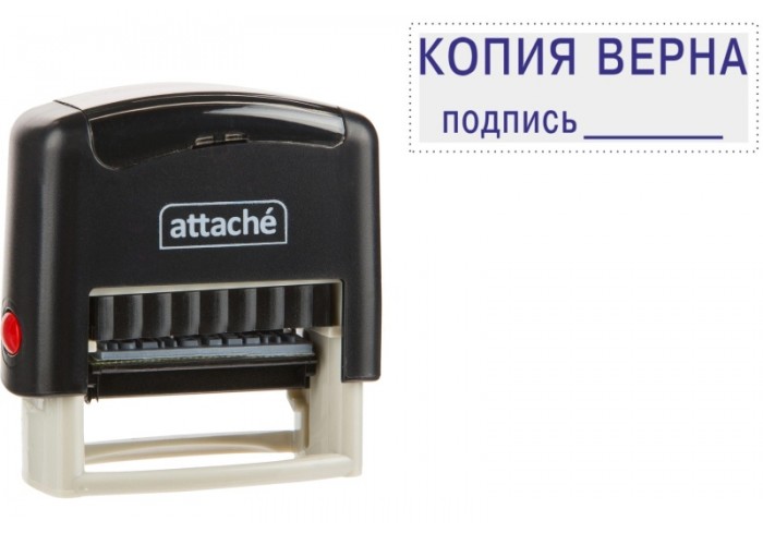 Штамп Attache стандартный для проставления оттиска "КОПИЯ ВЕРНА подпись ___________". Компактный и надежный пластиковый корпус с автоматическим поворо..