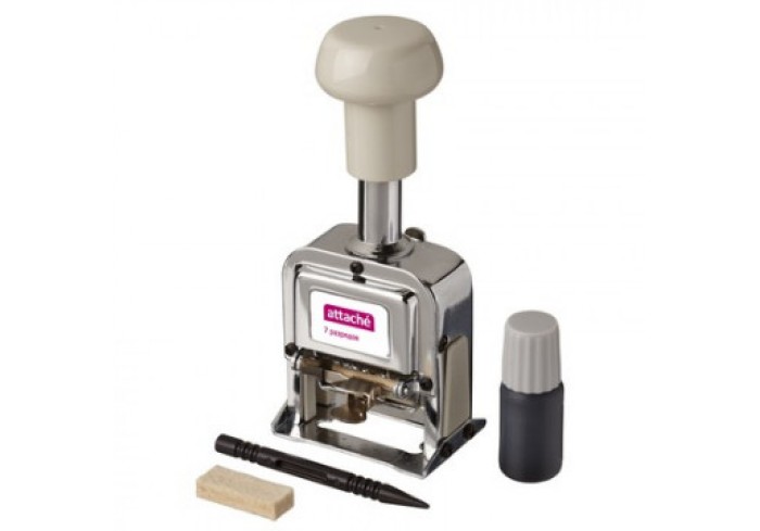 Нумератор автоматический Attache 7-и разрядный, размер шрифта 4,8 мм. Металлический корпус. При нажатии на ручку нумератора на бумаге появляется оттис..