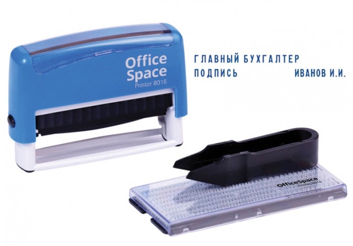 Самонаборный автоматический пластиковый 2-х строчный штамп OfficeSpace. Размер оттиска 70*10мм, оснастка с рифленой пластиной. Автоматическое окрашива..