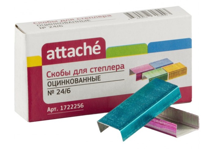 Скобы для степлера № 24/6 Attache предназначены для степлеров со сшивающей способностью до 30 листов. Скобы № 24/6 выполнены из цинкового металла. 100..