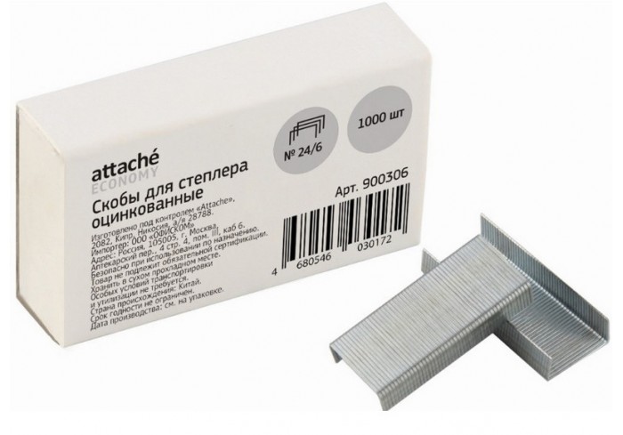 Скобы для степлера № 24/6 Attache Economy предназначены для степлеров со сшивающей способностью от 2 до 20 листов бумаги 70 гр/м2. Скобы № 24/6 выполн..