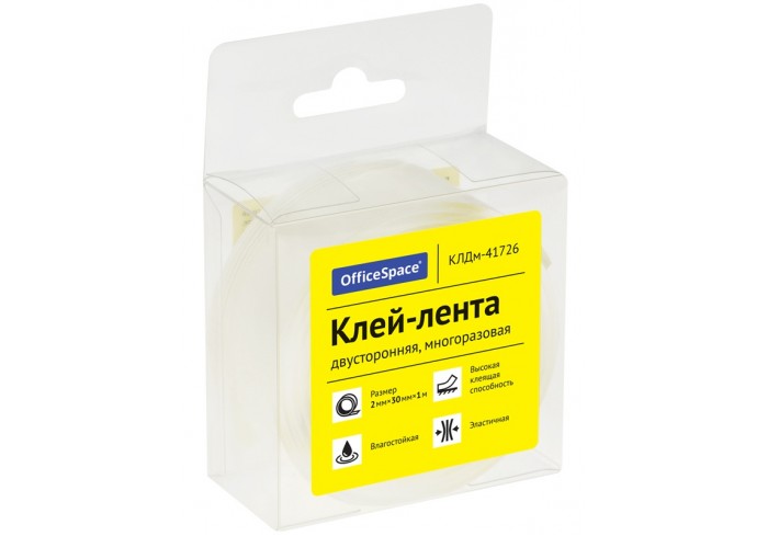 Лента OfficeSpace для крепления любых предметов к стене, столу, в автомобиле и других поверхностях. Плотность: 1000 мкм. Длина намотки: 1000 мм. Прозр..