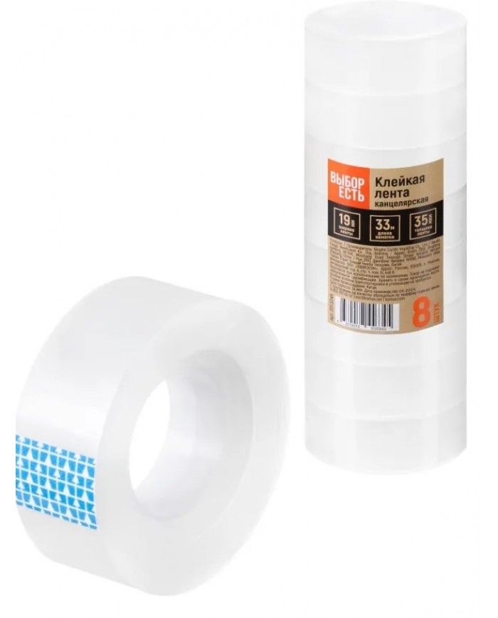 Клейкая лента Выбор есть разработана специально для решения большинства канцелярских задач в офисе, школе и дома. Она поможет с упаковкой, запечатыванием, мелким ремонтом, станет незаменимым инструментом в скрапбукинге. Имеет длину 33 м и ширину 19 мм, обладает высокой клеящей способностью. Отличается прозрачностью и плотностью 35 мкм. Может быть использована в диспенсере.