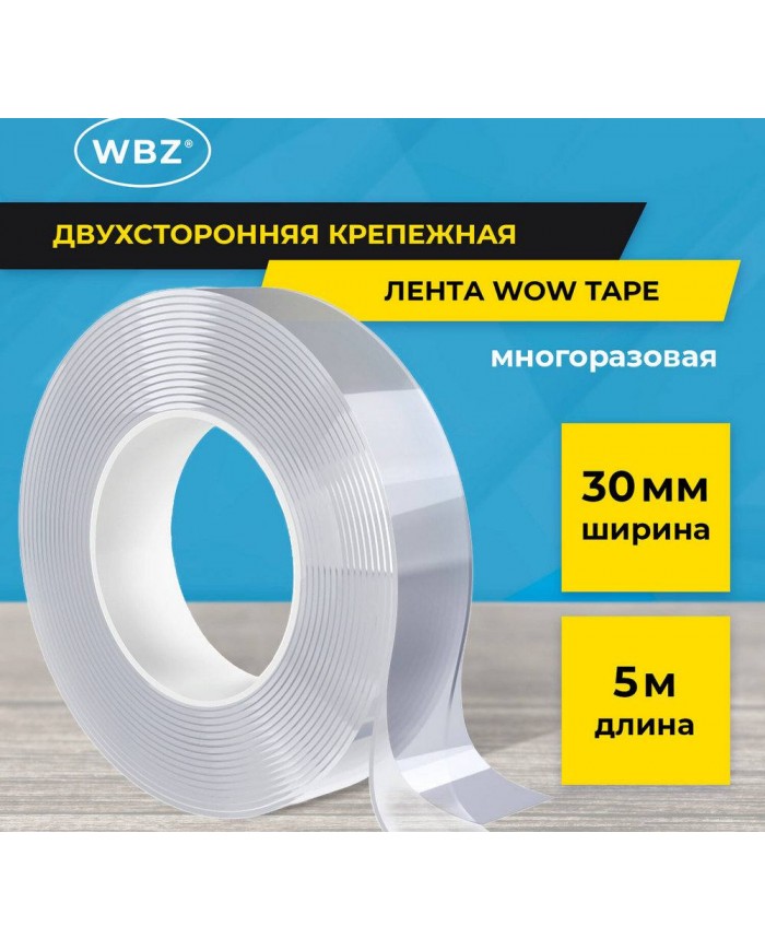 Многоразовая двухсторонняя прозрачная крепежная лента Скотч NANO tape 5 м x 3 см, толщина 1 мм, WBZ,