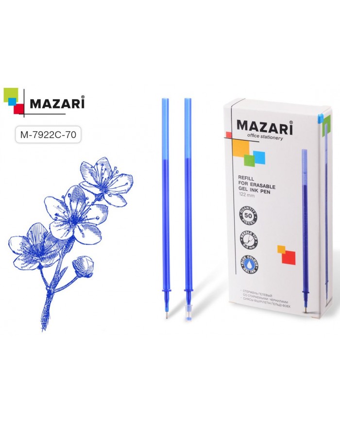 Стержень гелевый со стираемыми чернилами, СИНИЙ, игольчатый пиш. узел 0.5 мм, длина 122 мм, подходит для ручек M-5301,M-5302,M-5303,M-5524,M-5531,M-5540,M-5546