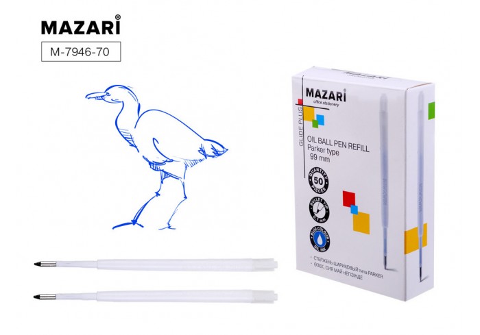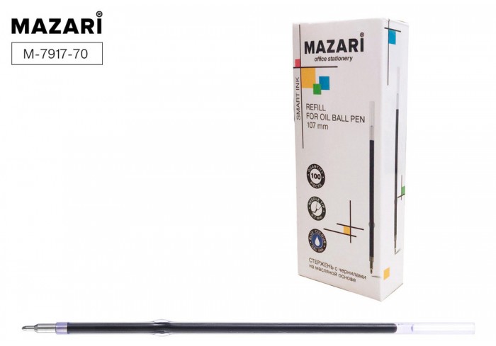 Стержень для шариковой ручки с чернилами на масляной основе синего цвета, толщина линии письма - 0,6 мм, длина стержня - 135 мм...