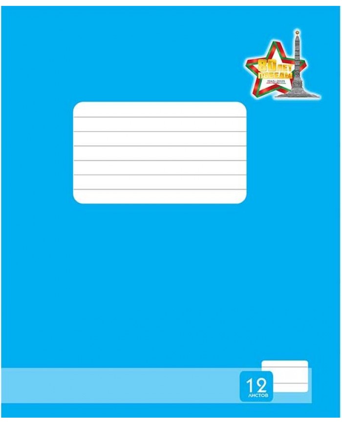 Тетрадь 12л. клетка, с логотипом "80 лет Победы", мелов.обложка, цвет обложки-ассорти