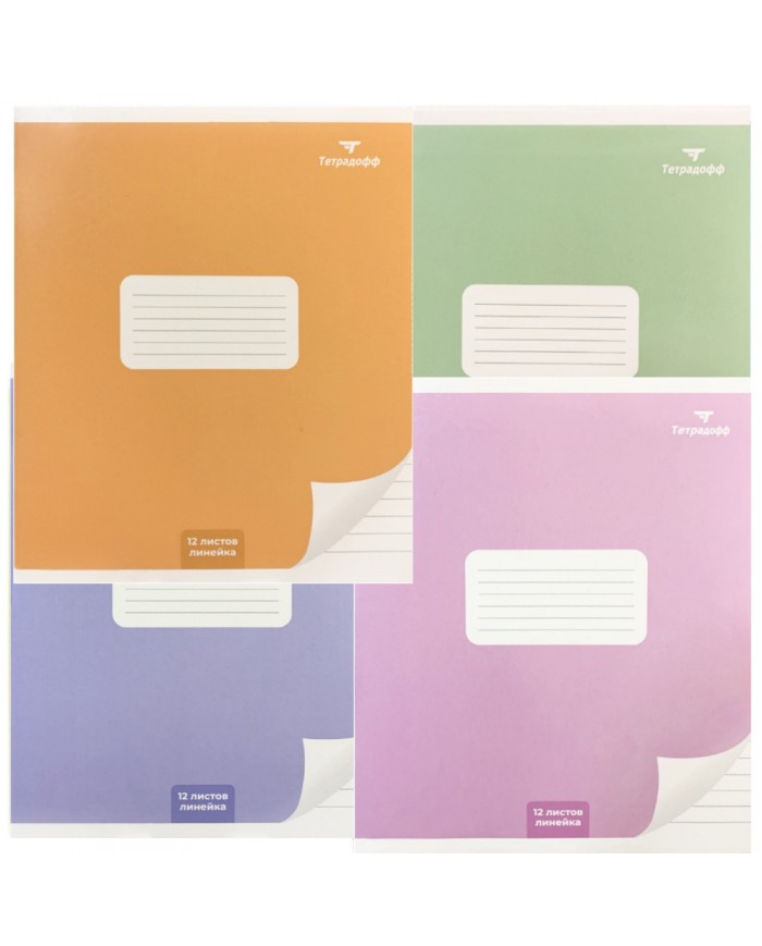 Тетрадь школьная 12л, ЛИНЕЙКА, картонная обложка, однотонная, цвета ассорти