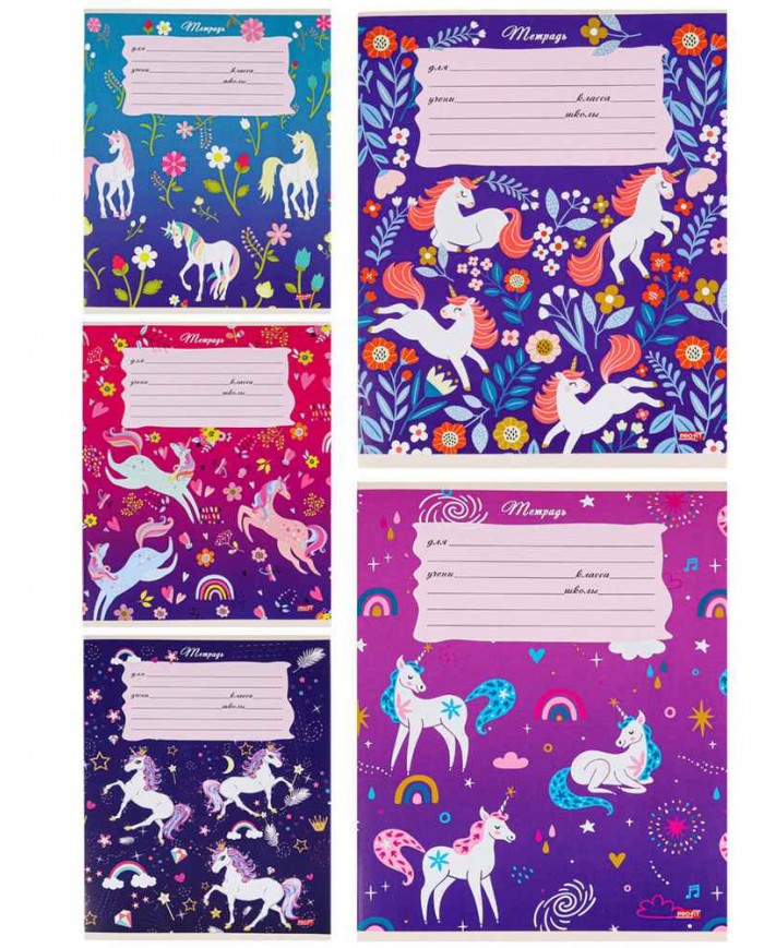 Тетрадь 24л ЛИНИЯ ОРНАМЕНТ С ЕДИНОРОГАМИ обложка -мелов. картон, 5 дизайнов