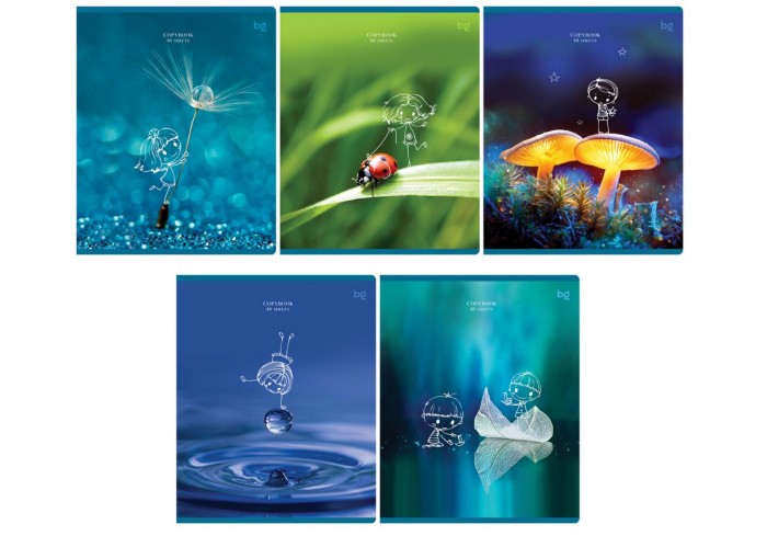 Тетрадь BG серии в клетку. Формат А5 (165*205 мм). Вид крепления – скоба. Внутренний блок – это 48 листов, офсетная бумага плотностью 60 г/м?. Обложка..