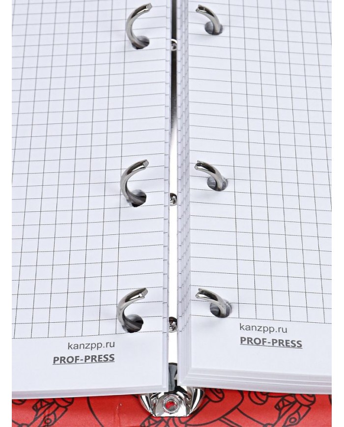 Внутренний блок содержит 96 листов офсетной бумаги плотностью 65 г/м2. Обложка изготовлена из мелованного картона. Линовка - клетка с полями. Скрепка ..