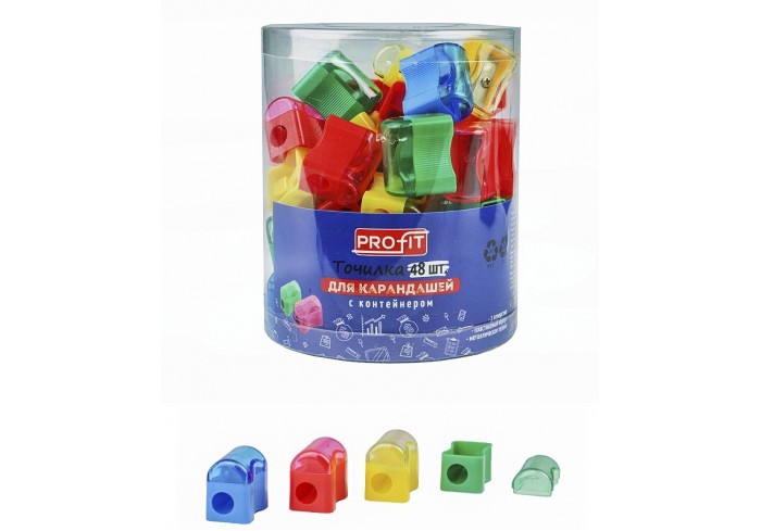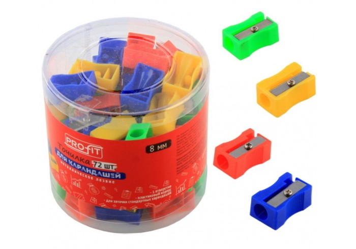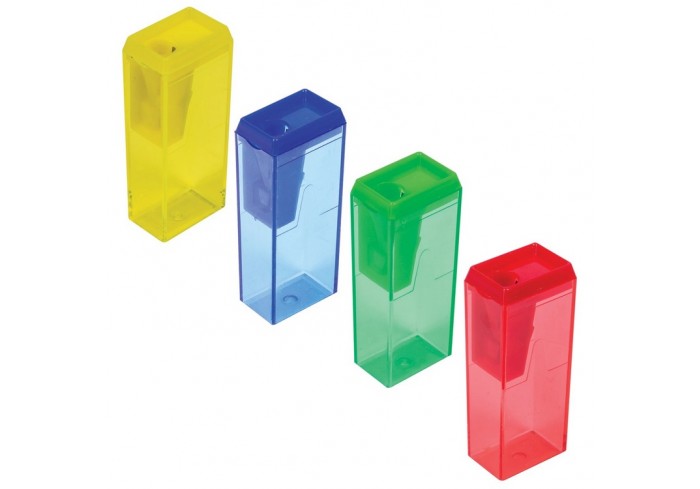 Упаковка точилок в пластиковом корпусе разных цветов. Предназначена для заточки карандашей всех видов и профилей диаметром 8 мм. Оснащена металлически..