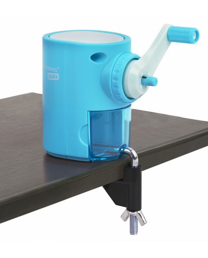 Корпус точилки выполнен из пластика голубого цвета. Вращающийся роликовый нож из высококачественной стали обеспечивает быструю и острую заточку. Струб..