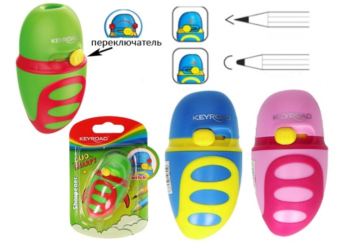 Корпус выполнен из пластика ярких цветов ассорти. Острое стальное лезвие обеспечивает быструю и легкую заточку. Карандаш затачивается аккуратно, а опи..