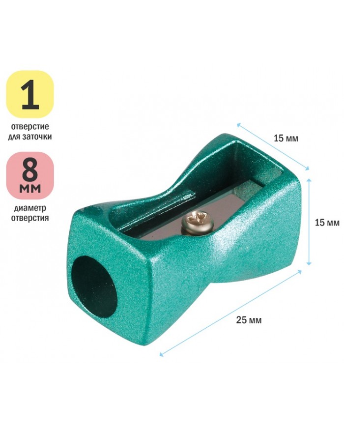 Точилка металлическая ArtSpace Metallic идеально подходит для затачивания карандашей. Размер изделия – 25*15*15 мм. Диаметр отверстия – 8 мм. Точилка ..