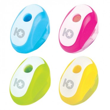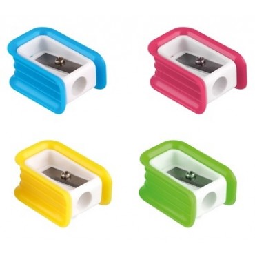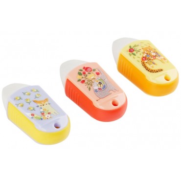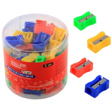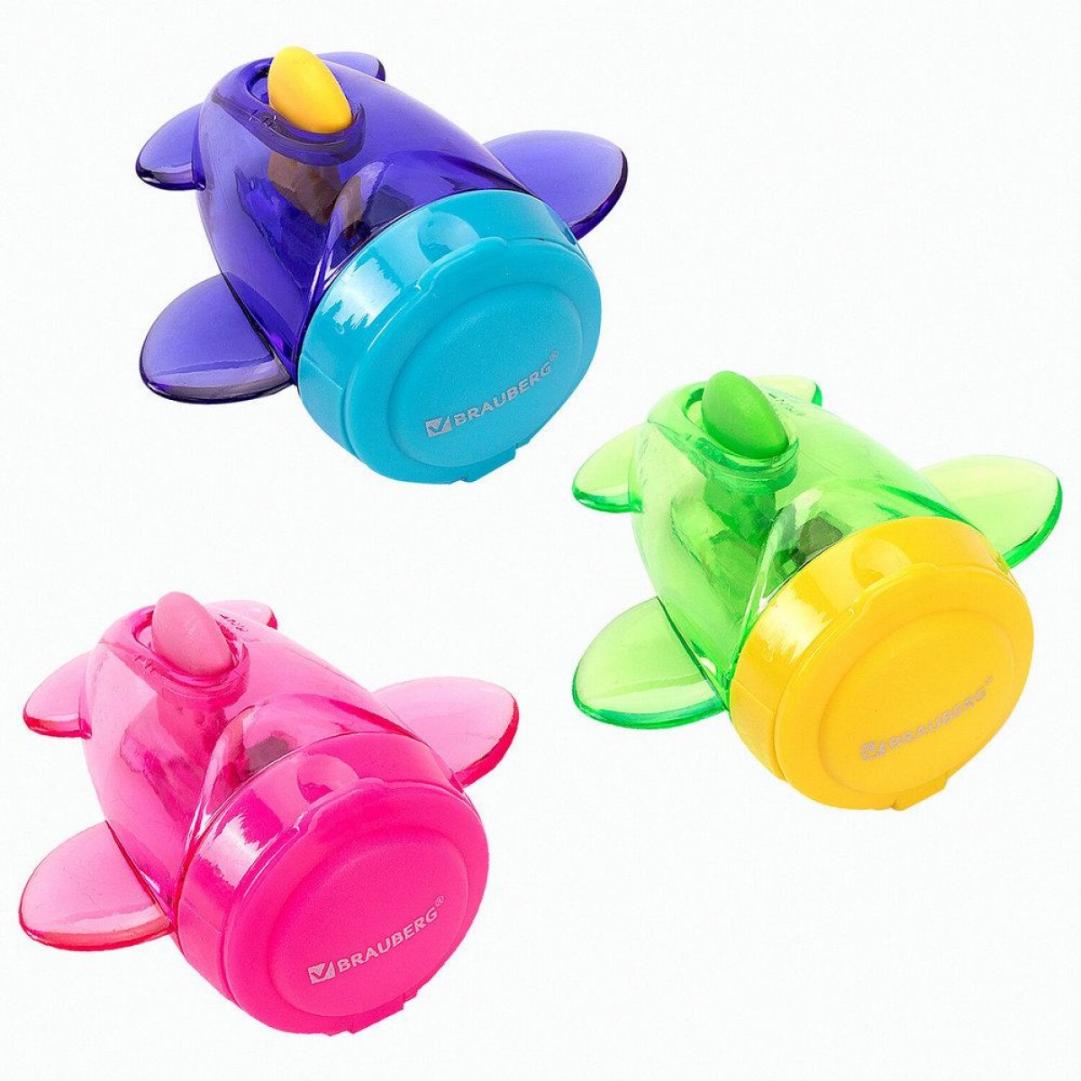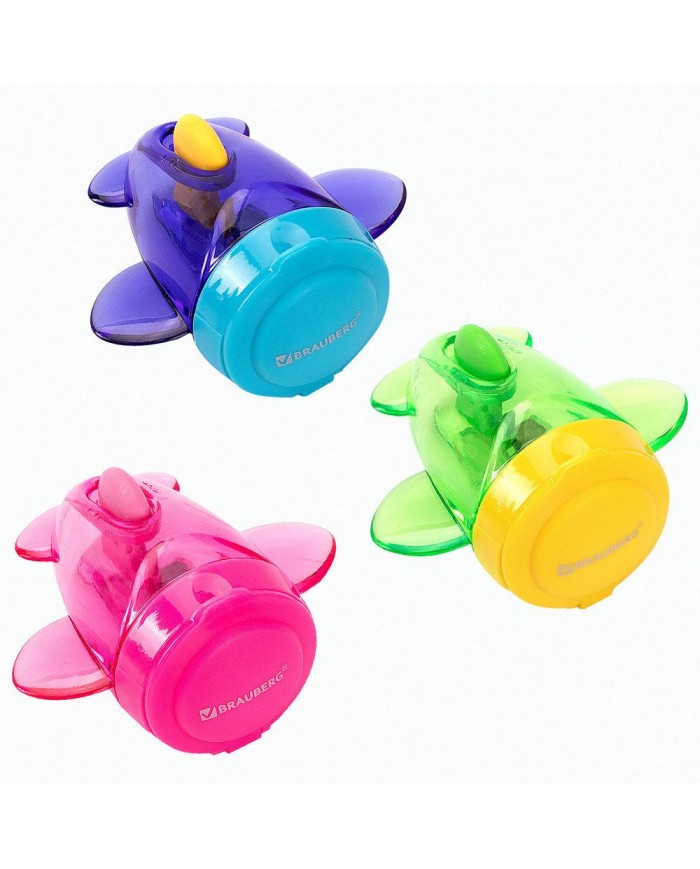 Точилка BRAUBERG "JET", 3 угла заточки, пластиковая с контейнером, ассорти,