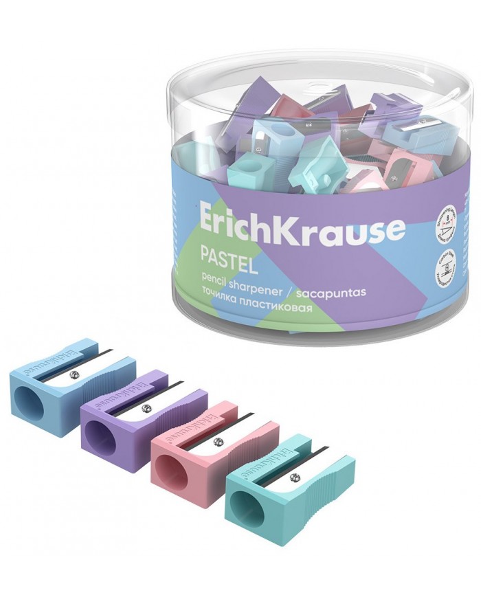 Точилка пластиковая ErichKrause EasySharp, Pastel, ассорти