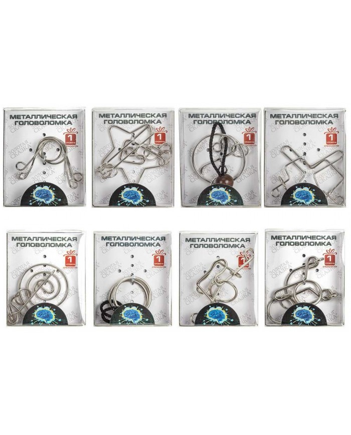 Головоломка металлическая большая ЗОЛОТАЯ СКАЗКА, 24 вида, в дисплее, разные уровни сложности,