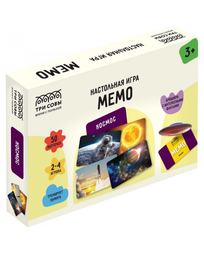 Игра настольная ТРИ СОВЫ "Мемо. Космос ", 50 карточек, картонная коробка