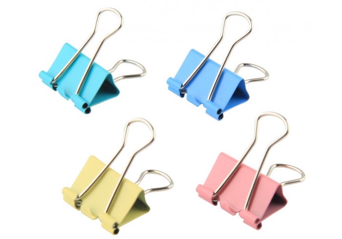 Цветные зажимы для бумаги из металла предназначены для скрепления большого количества листов плотностью 80 г/кв.м, до 60 шт, без использования степлер..