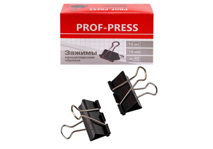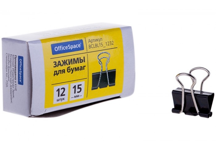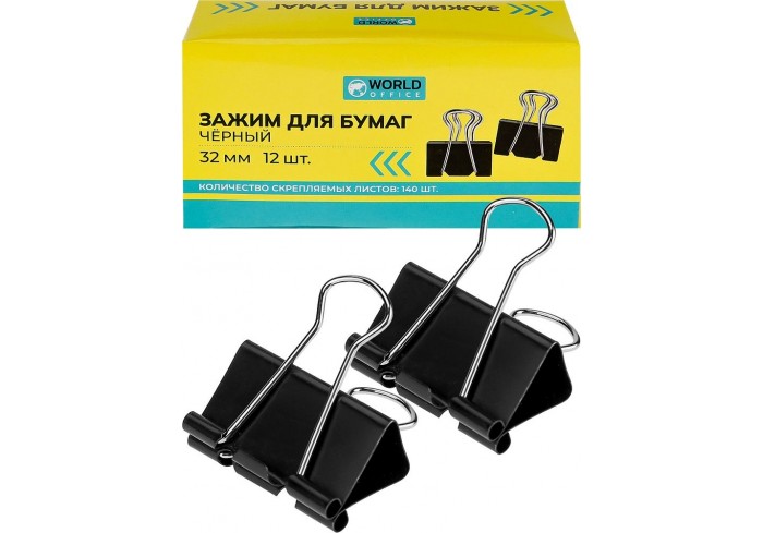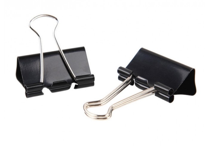 Металлический зажим для бумаг, корпус окрашен в черный цвет. Для скрепления большого количества листов. Не деформируют бумагу. Цвет - черный. 12 штук ..