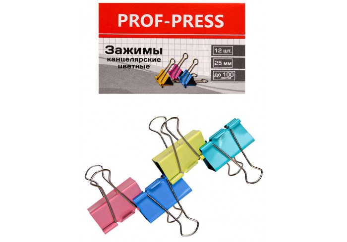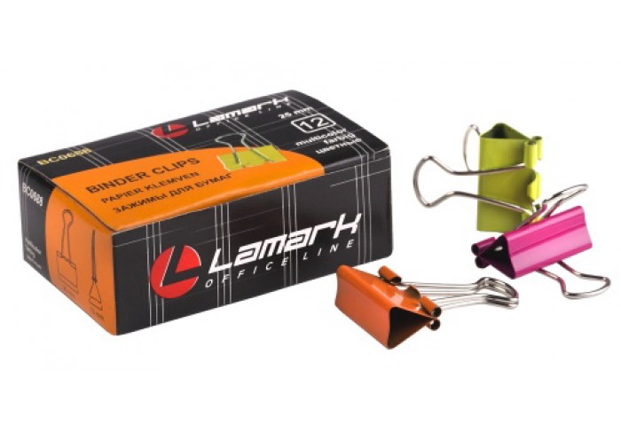 Зажимы для бумаг цветные НЕОН. Размер 25 мм. 12 штук в цветной картонной коробке...