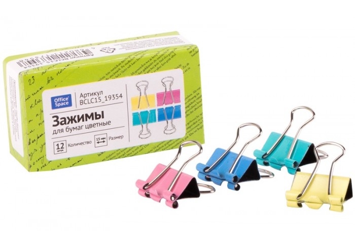 Зажимы для бумаг цветные НЕОН. Размер 15 мм. 12 штук в цветной картонной коробке...