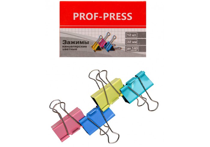 Для скрепления большого количества листов. Не деформируют бумагу. Цвет ассорти. 12 штук в коробочке...