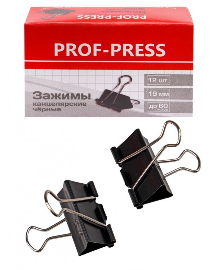 Зажим для бумаг ЧЕРНЫЙ 19мм, (набор 12шт) в карт. коробке