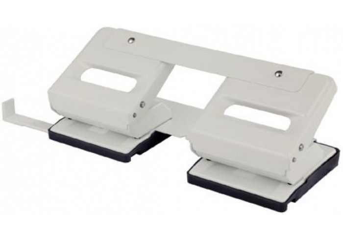 Дырокол работает с документами толщиной до 40 листов плотностью 80 г/кв.м. Пробивает два отверстия диаметром 5,5 мм, расстояние между отверстиями — 80..