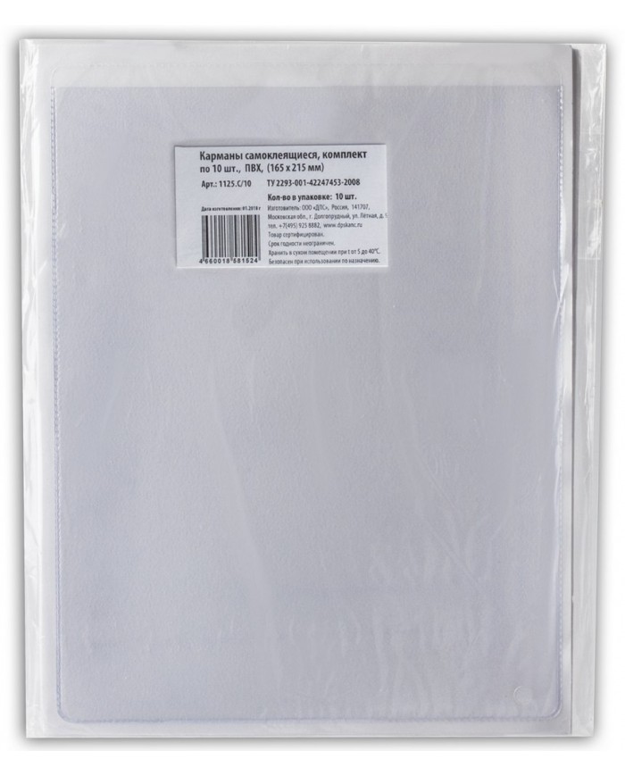 Карманы самоклеящиеся на любую поверхность ФОРМАТА А5 (165х215 мм), КОМПЛЕКТ 10 шт., ДПС,