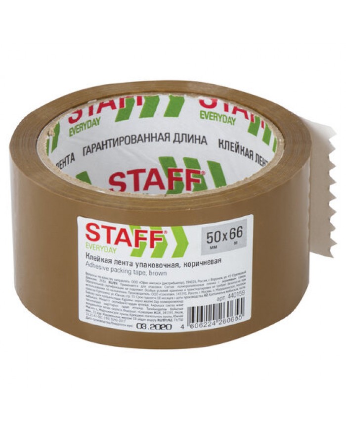 Клейкая лента 50 мм х 66 м упаковочная КОРИЧНЕВАЯ, толщина 40 микрон, STAFF