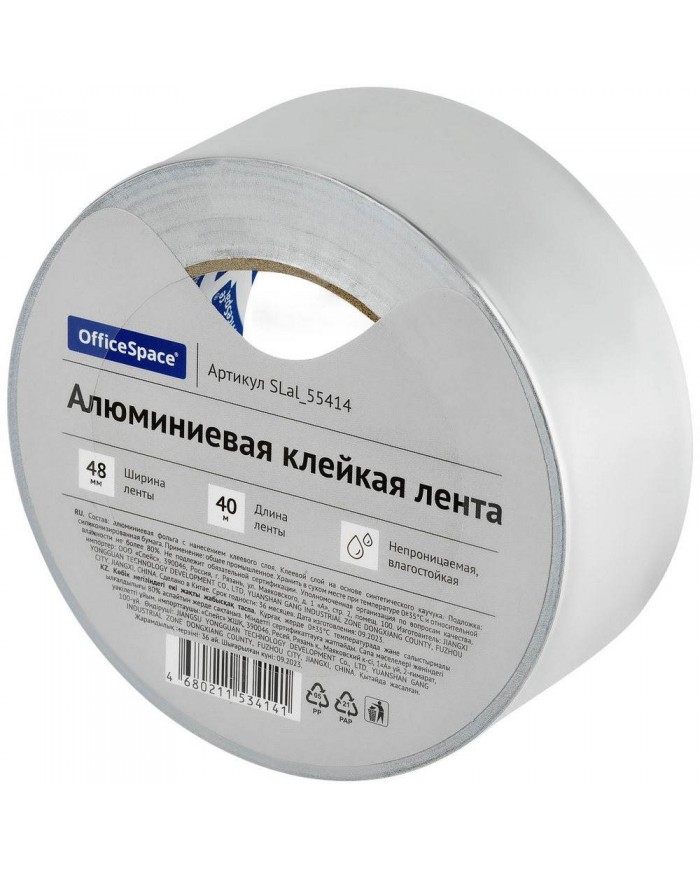 Алюминиевая клейкая лента OfficeSpace – клейкая лента на основе алюминиевой фольги с клеевым слоем, обладает отличными термоизоляционными свойствами и термостойкостью. Используется при теплоизоляционных работах; монтаже вентиляционного и кондиционерного оборудования; при устройстве пожарной безопасности у печей, каминов, дымоходов и других отопительных приборов; при изготовлении от бытовой техники до промышленного холодильного оборудования; в качестве защиты для проводки, деталей и элементов оборудования. Обладает такими особенностями как влагоустойчивость, устойчива к коррозии, износоустойчива.