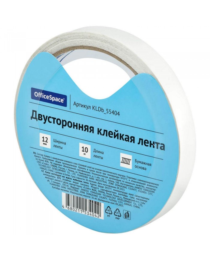 Клейкая лента двусторонняя OfficeSpace, 12мм*10м, бумажная основа
