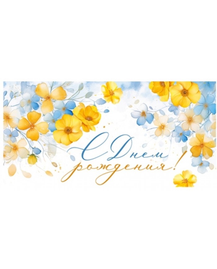 Конверт для денег Горчаков ГК "С ДНЕМ РОЖДЕНИЯ! (желтые и голубые цветочки), 84*168мм,