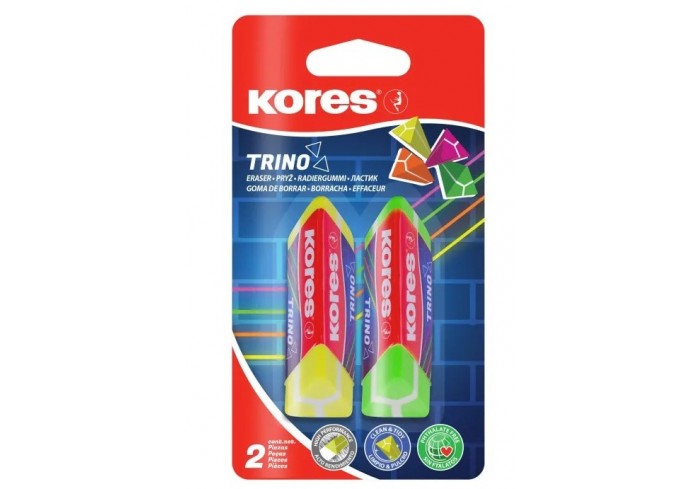 Kores Eraser Trino - это качественный ластик треугольной формы из ПВХ в оринигальном неоновом дизайне. Неабразивный ластик не портит и не пачкает бума..