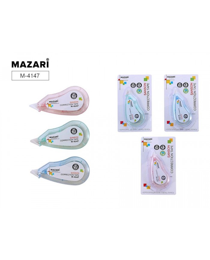 Корректирующая лента-роллер SANSON, 5мм x 12м, 3 цвета корпуса в ассортименте, блистер