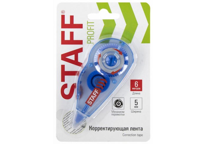 Корректирующая лента STAFF PROFIT позволяет экономить время на исправление текста, не требует времени для высыхания после нанесения, делает корректиро..