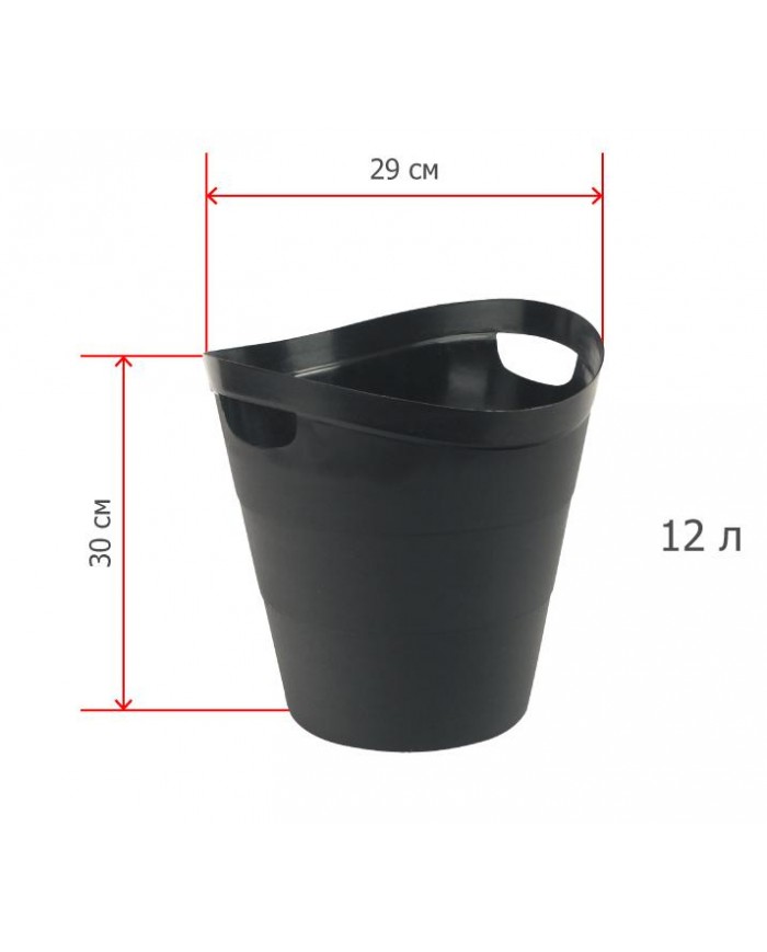 Корзина офисная цельная 12л пластик, черная с ручками Uniplast КХУ-10