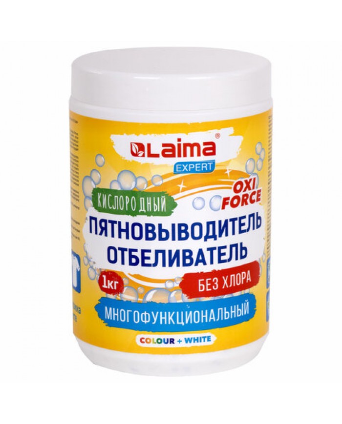 Быстро удаляет пятна с одежды, белья, обивки мебели, салона автомобиля, ковров, линолеума, кухонных поверхностей. Эффективно удаляет пятна от травы, крови, зеленки йода вина, плесени, пищи, а также от масел, смол, гудрона и т.д. Может использоваться как для предварительного замачивания белья, так и для стирки вместе со стиральным порошком для удаления сложных пятен. Отбеливает белое белье, сохраняет и освежает краски цветного, нейтрализует запахи и придает свежесть, бережно сохраняет структуру ткани. СПОСОБ ПРИМЕНЕНИЯ: указан на упаковке. СОСТАВ: карбонат натрия более 30%, перкарбонат более 30%, НПАВ менее 5%, АПАВ менее 5%, активатор стирки менее 5%, энзимы менее 5%. Масса нетто: 1000 г. УСЛОВИЯ ХРАНЕНИЯ: от 0°С до 35°С в закрытой упаковке отдельно от пищевых продуктов. Избегать попадания влаги. ТУ 20.41.32.125-003-43604234-2020