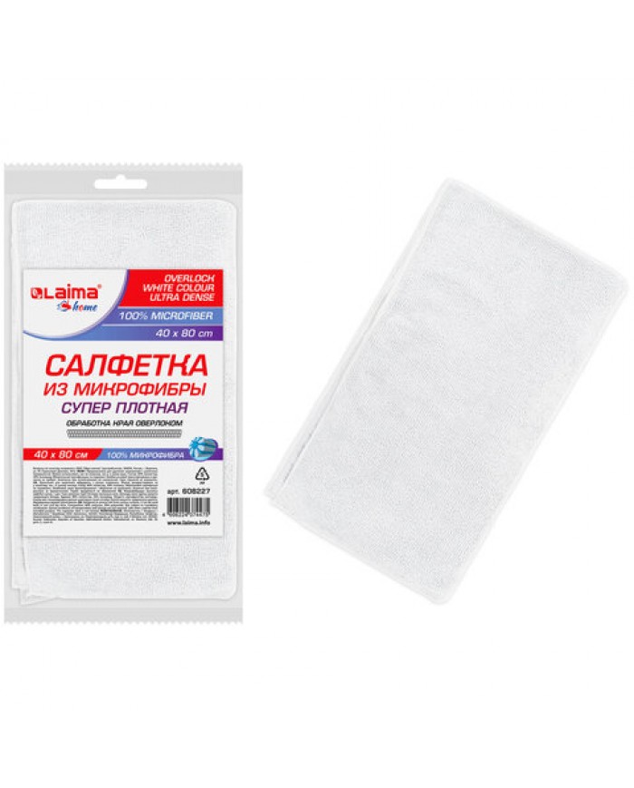 Салфетка из МИКРОФИБРЫ 40х80 см, WHITE ULTRA DENSE OVERLOCK, белая, 280 г/м2, LAIMA HOME,